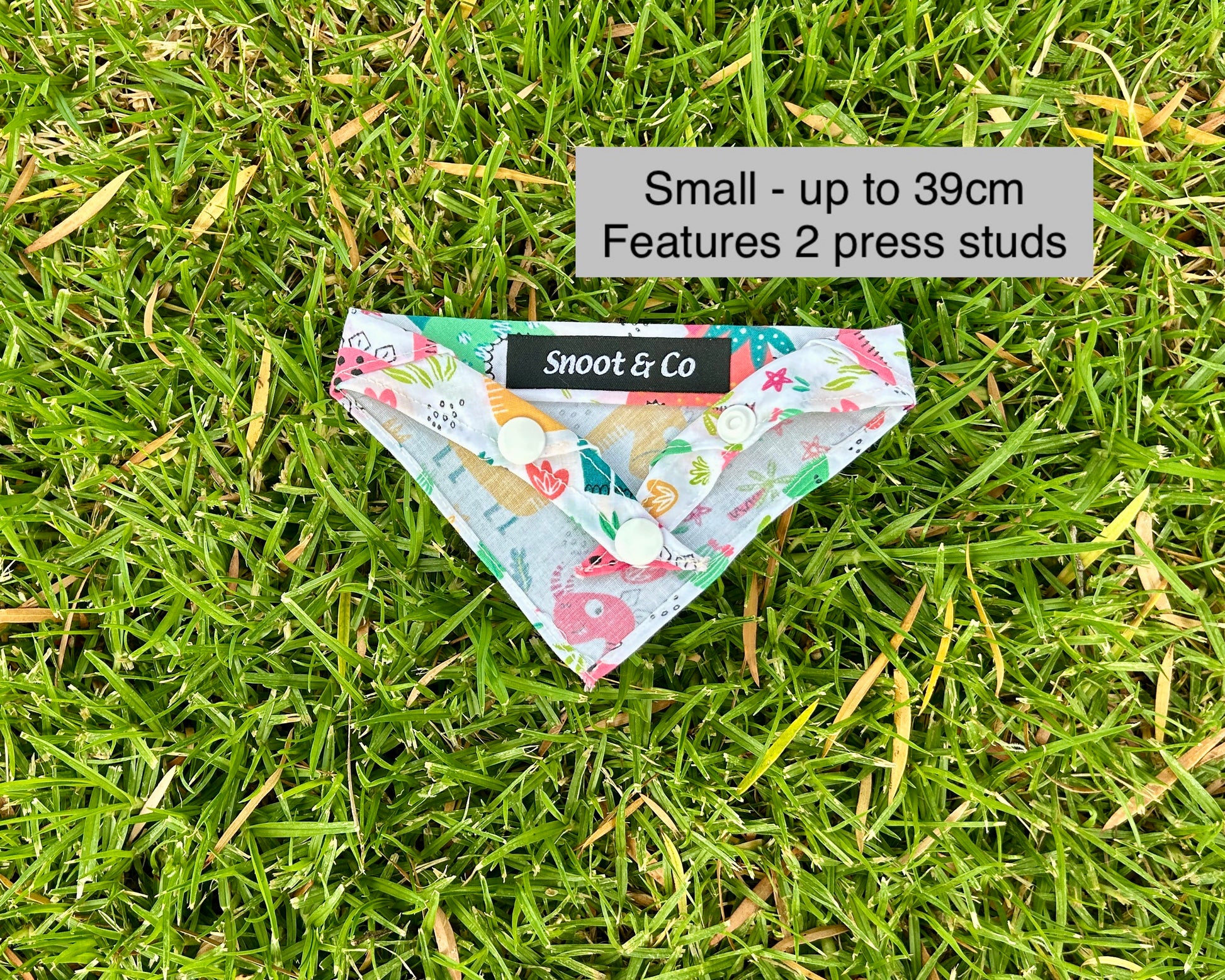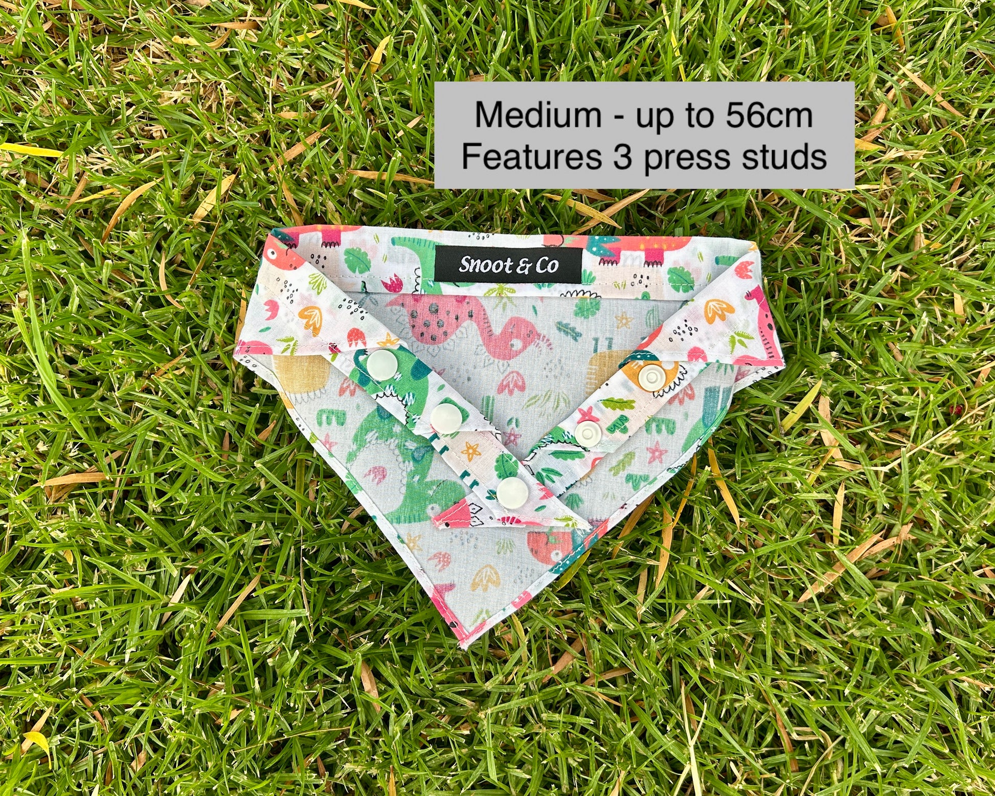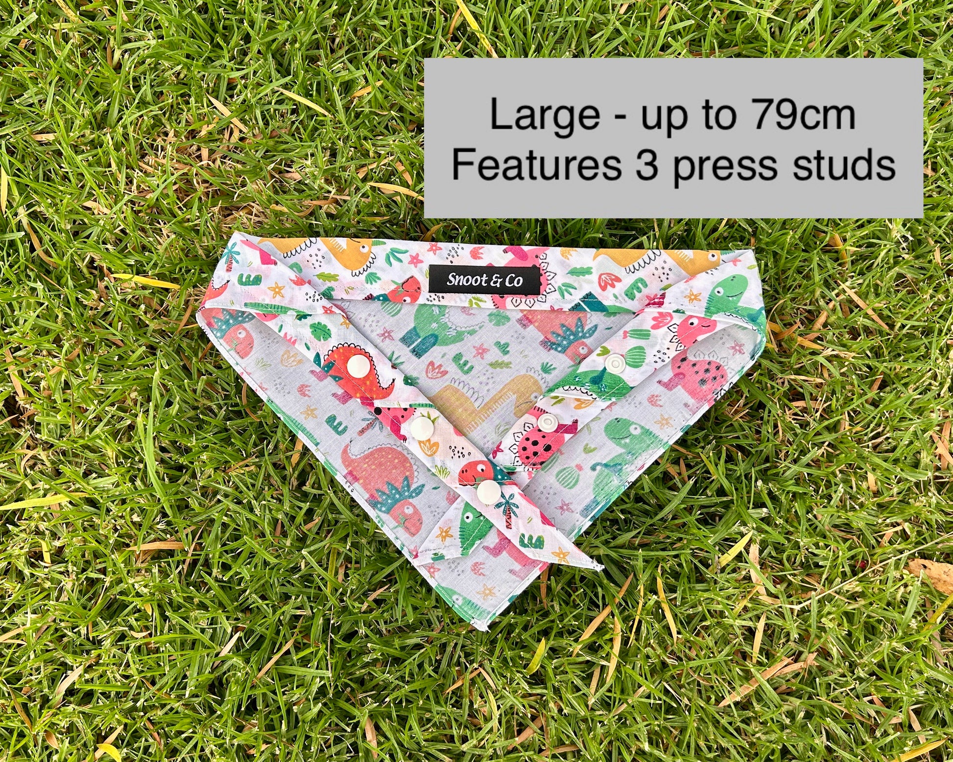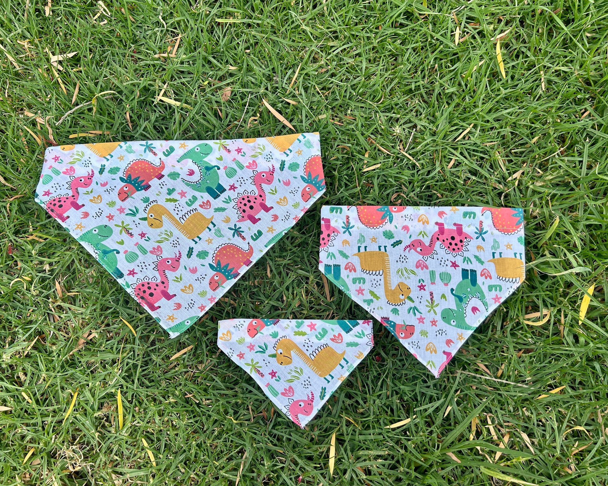 Unleash some prehistoric fun with our Colorful Dinosaur Dog Bandana! Featuring a playful dinosaur print in vibrant colors, this bandana is perfect for adventurous pups who love to stand out. Designed with both a snap closure and tie option, it offers a secure, adjustable fit for dogs of all sizes. Whether for playtime, walks, or everyday wear, this bandana adds a roar-some touch of personality to your dog’s look. Handcrafted with care, it’s a fun and unique accessory for your dino-loving furry friend!