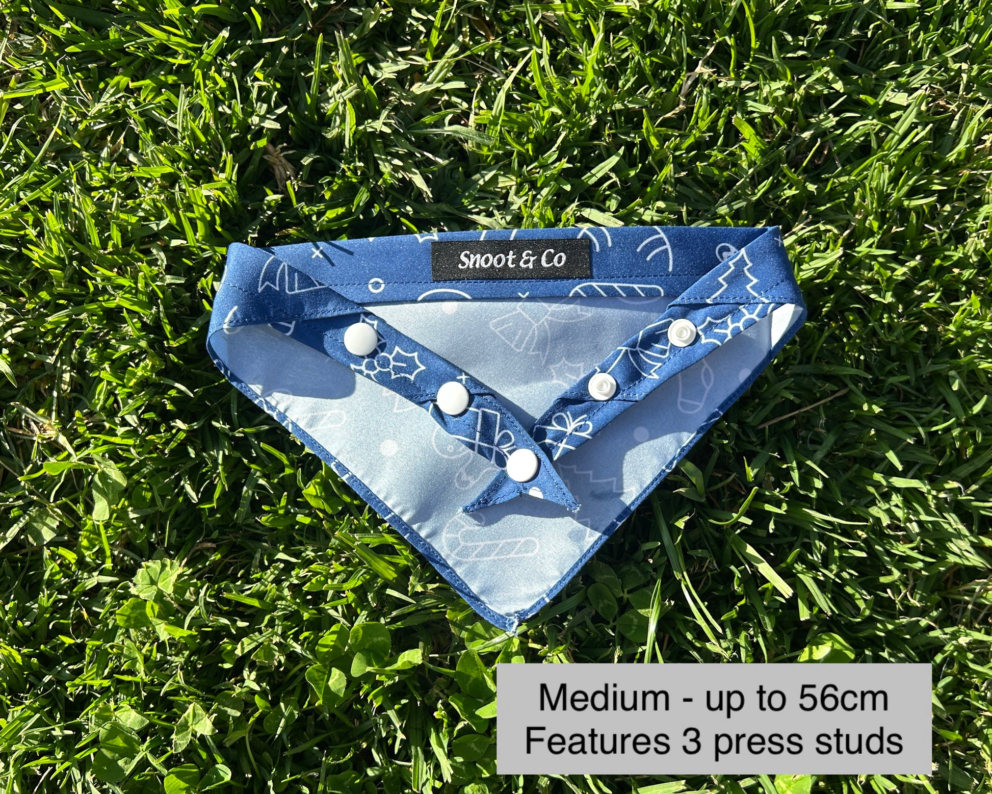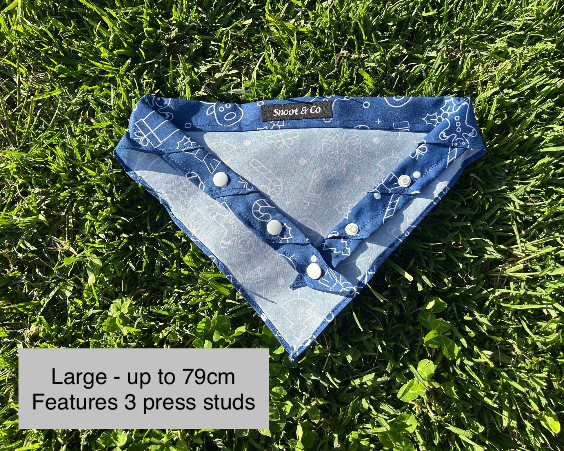 Bring festive elegance to your pup’s holiday wardrobe with our Navy Ornament Bandana, part of our Christmas Collection! Featuring a sophisticated navy background adorned with delicate ornament designs, this bandana adds a stylish and festive touch to your furry friend’s look.