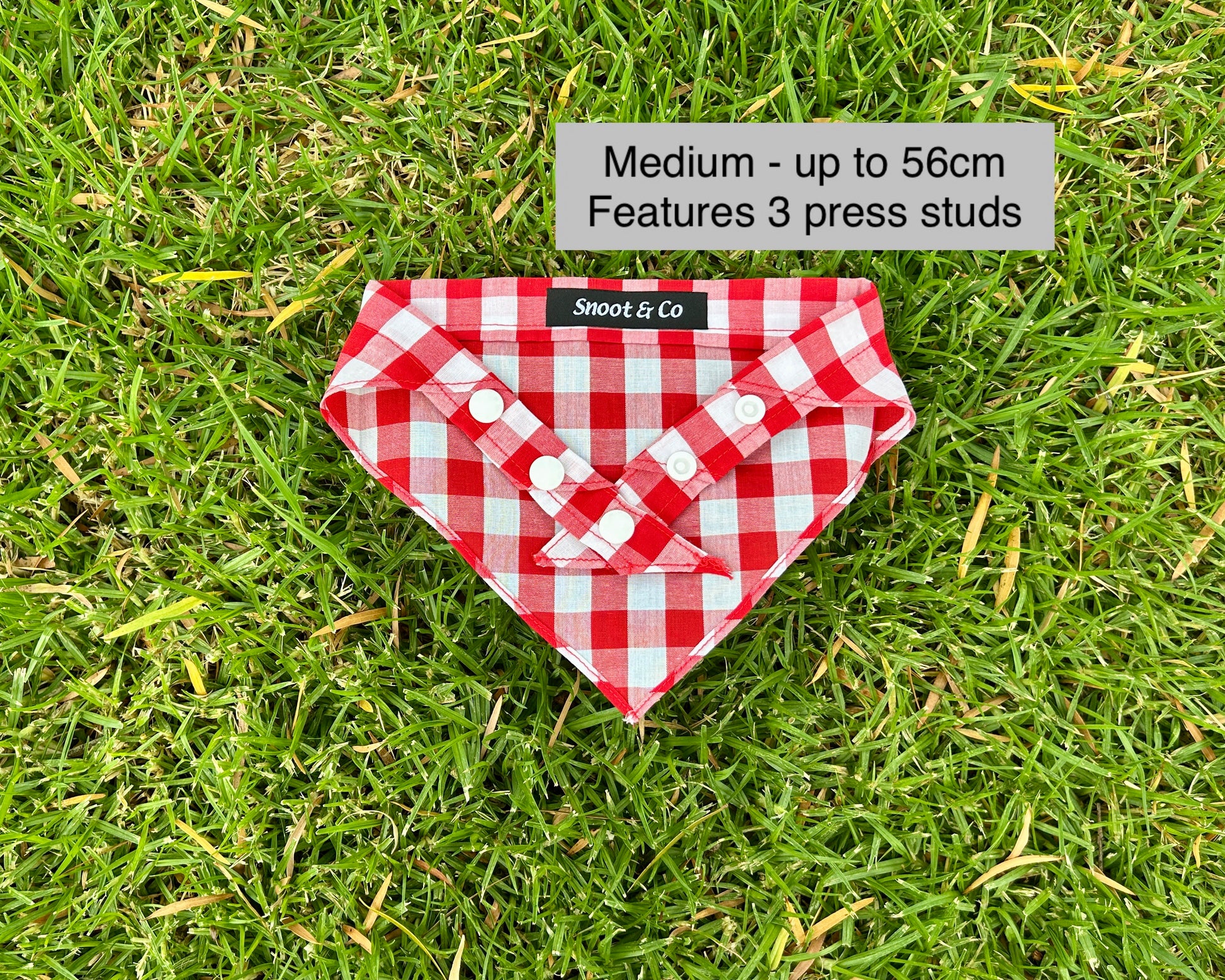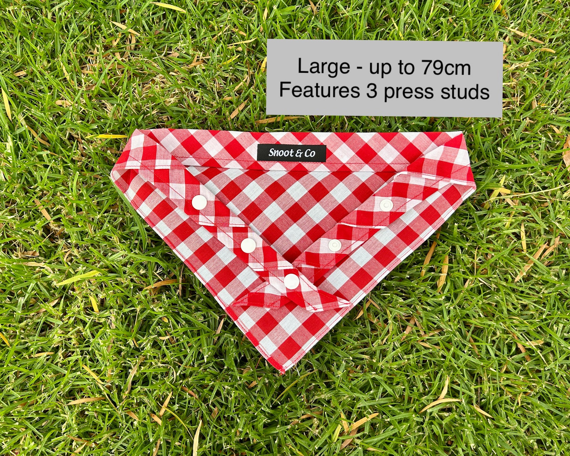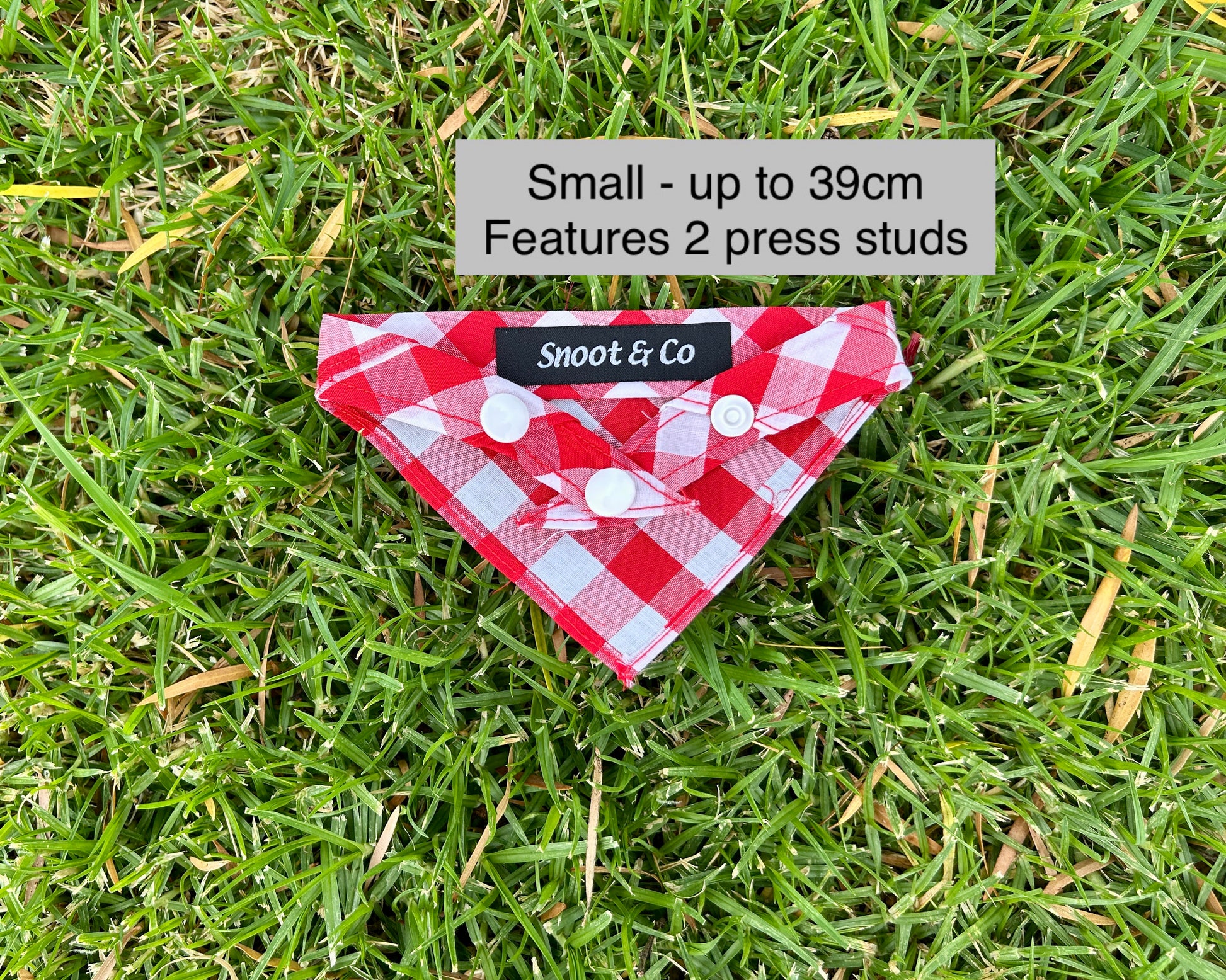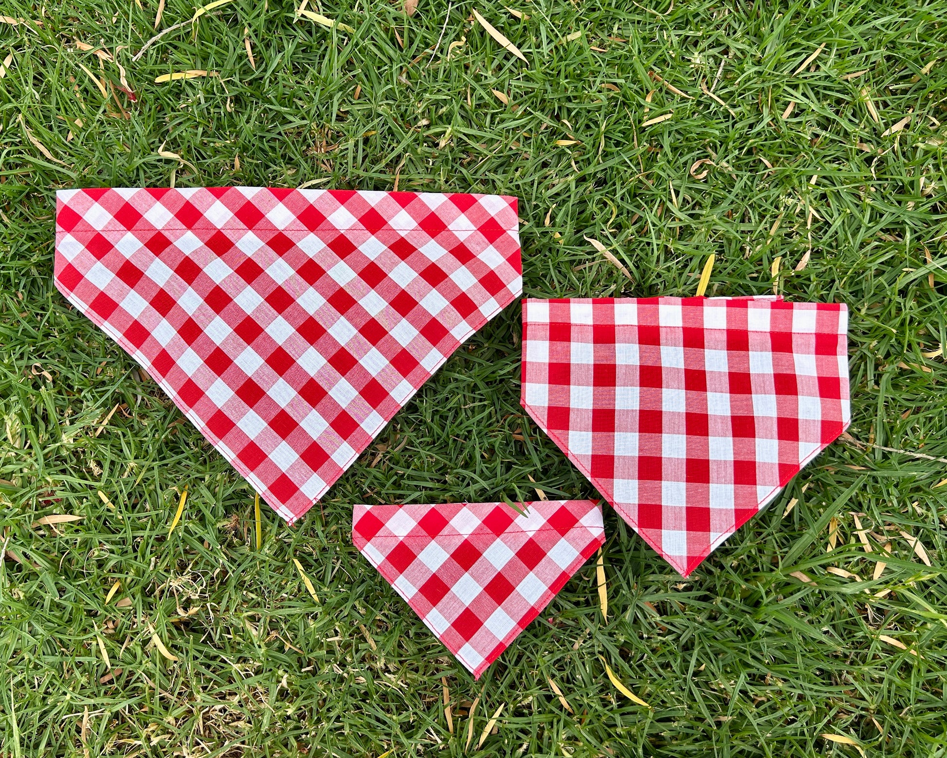 Classic, timeless, and full of charm—our Red Gingham Dog Bandana is a perfect addition to your pup’s wardrobe! Designed with both a snap closure and tie option, it offers a secure, adjustable fit for dogs of all sizes. Whether for picnics, BBQs, or adding everyday flair, this bandana brings a nostalgic, country-inspired touch to your dog’s style. Handcrafted with care, it’s a stylish staple for every dapper dog!