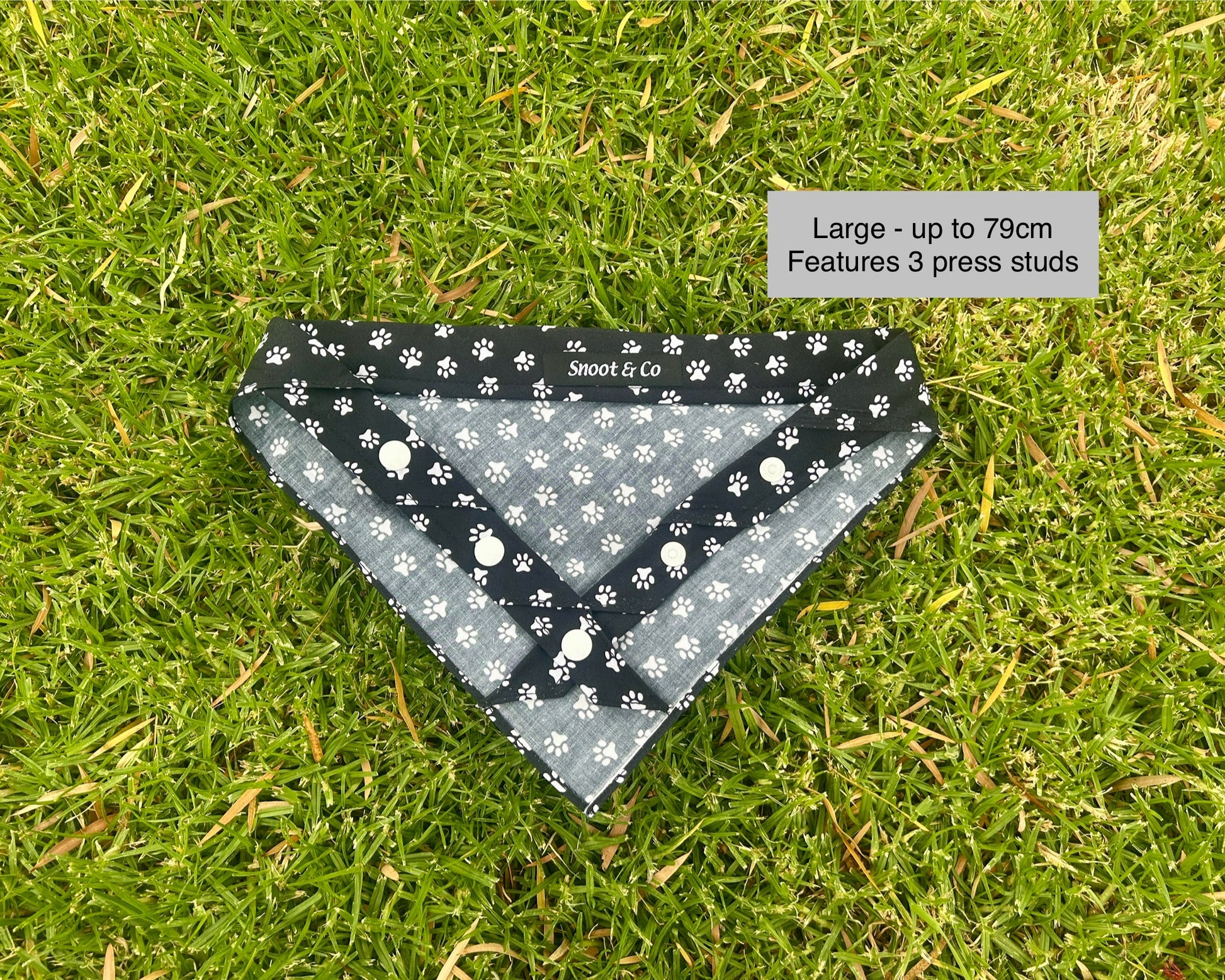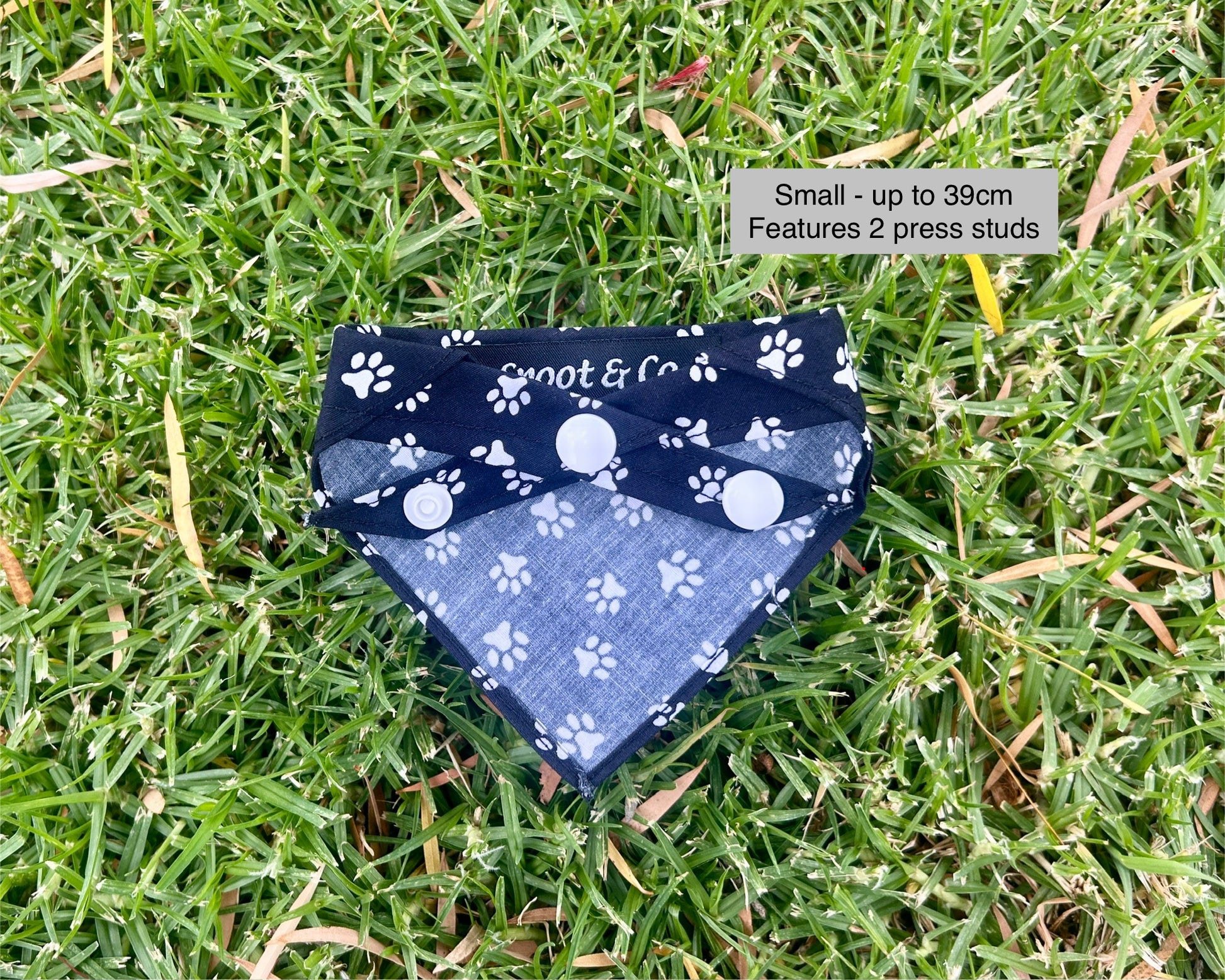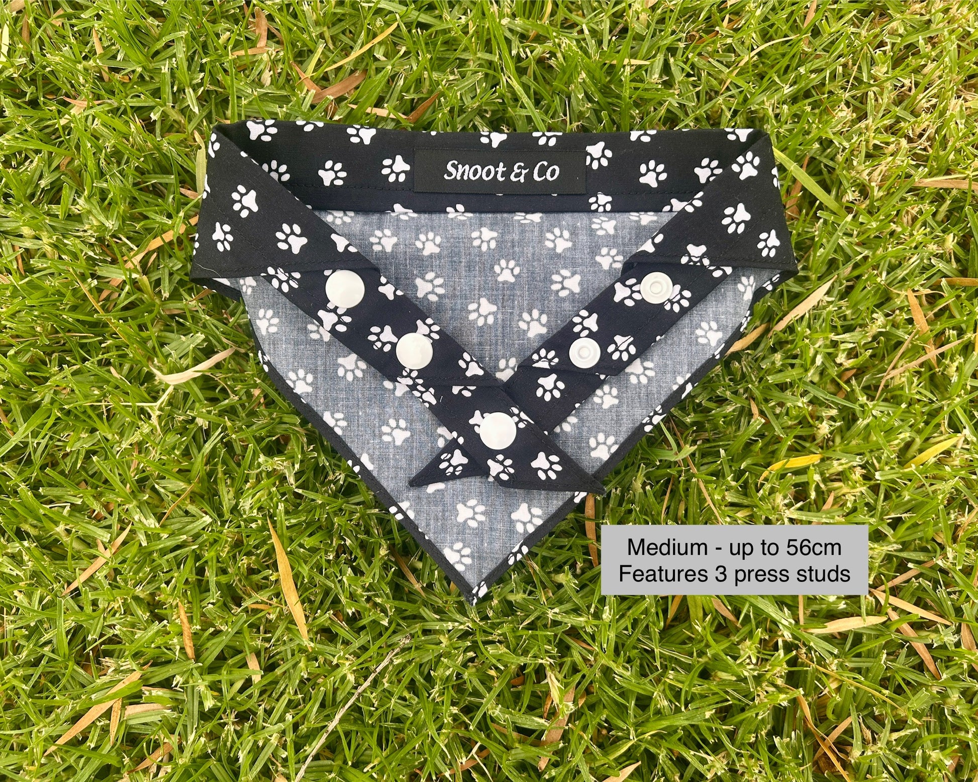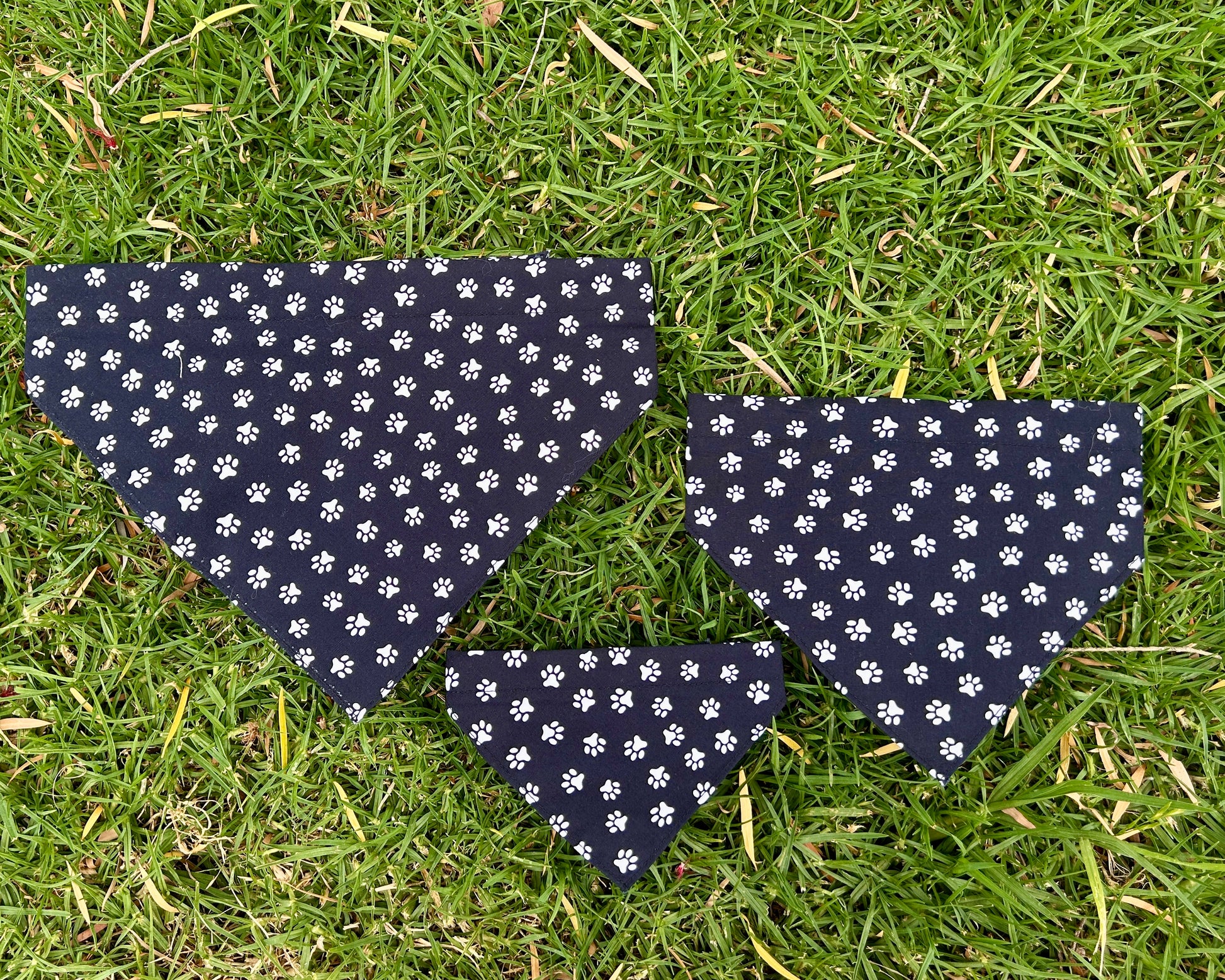 Let your pup wear their love for paws with our Black Pawprint Dog Bandana! Featuring a timeless pawprint design, this bandana is perfect for everyday wear or special outings. Designed with both a snap closure and tie option, it provides a secure, adjustable fit for dogs of all sizes. Handcrafted with care, it adds a playful, classic touch to your dog’s style—an essential accessory for paw-some pups!