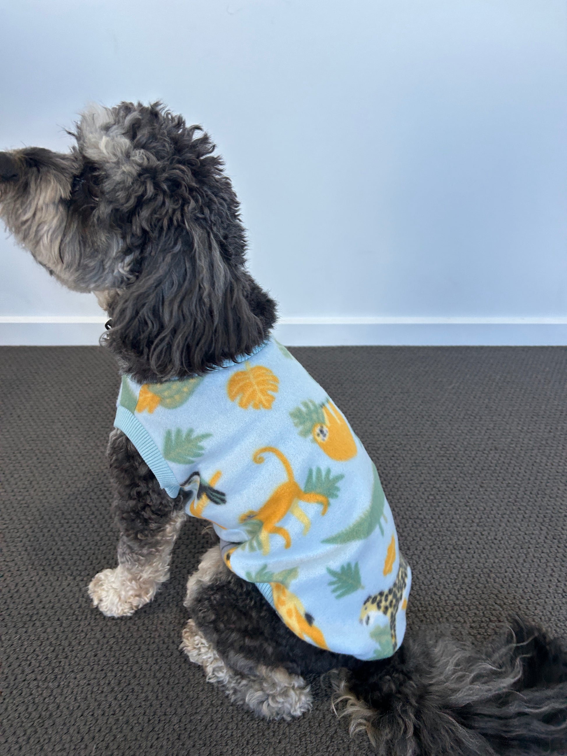 Adventure awaits with our safari polar fleece jumper! Featuring a fun mix of jungle animals on a soft, pale blue background, this cozy jumper brings a touch of the wild to your pup’s everyday look. Made from lightweight, insulating fleece, it’s perfect for staying warm on cooler days—whether you’re exploring the outdoors or lounging at home. A must-have for stylish adventurers and snuggle bugs alike.