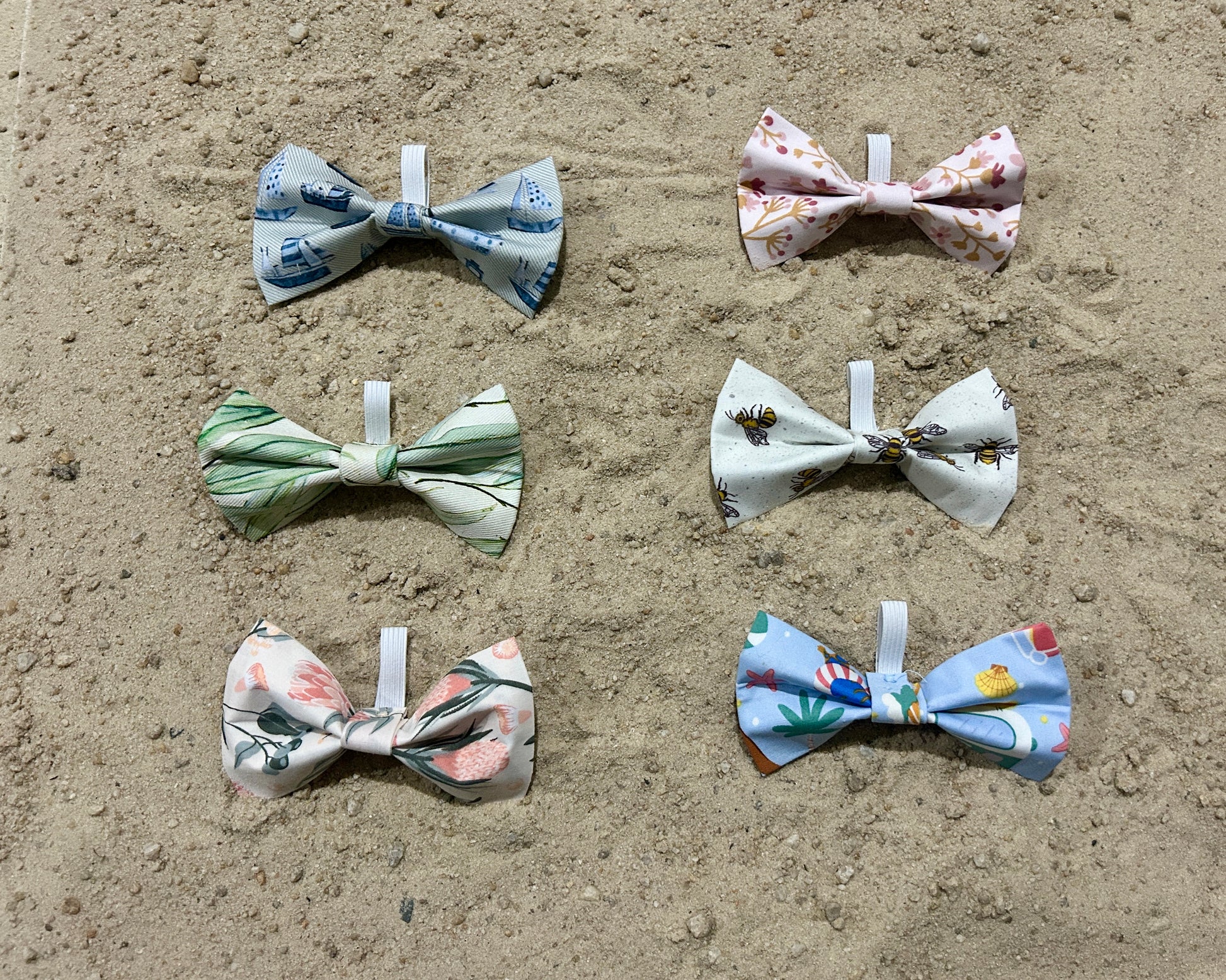 Each bow tie is handmade and easily attaches to your dog’s collar with a secure elastic loop. Lightweight, comfortable, and bursting with personality, these bow ties are the perfect accessory for any summer outing!