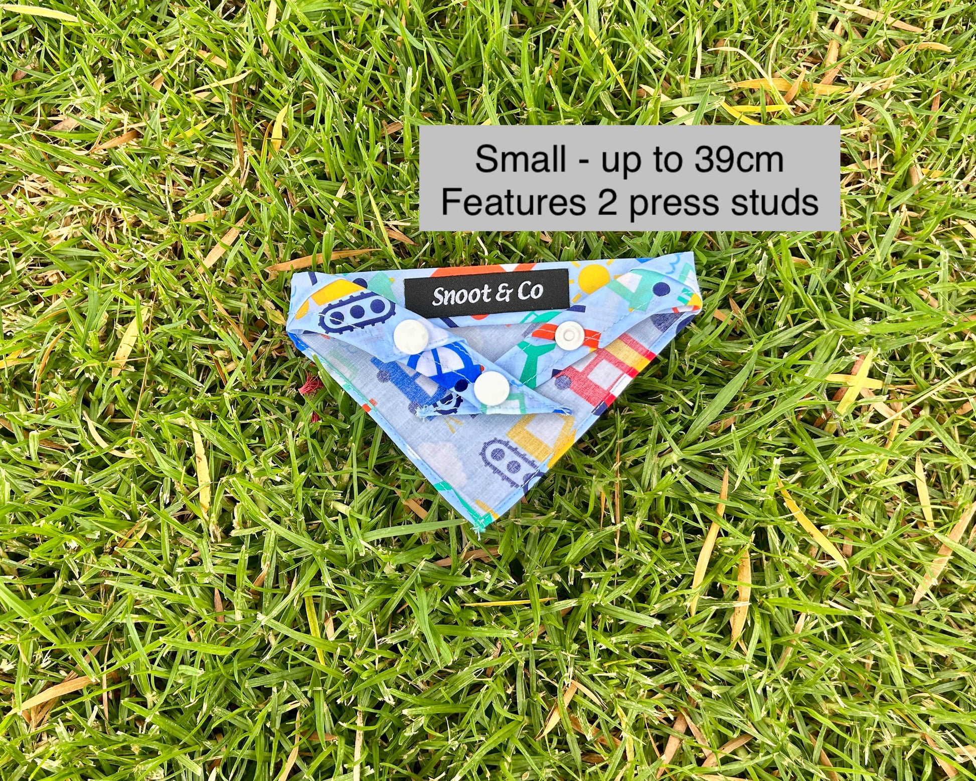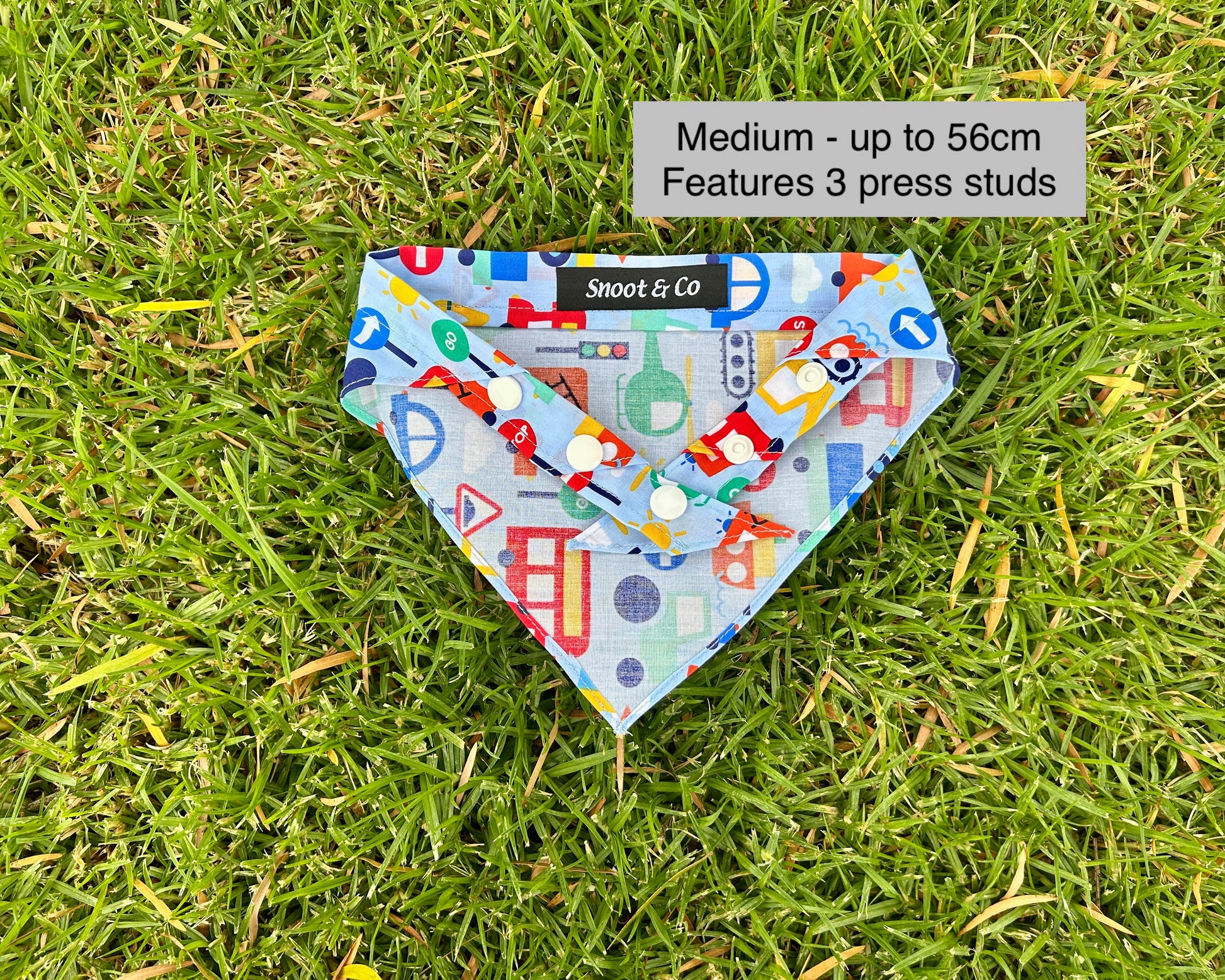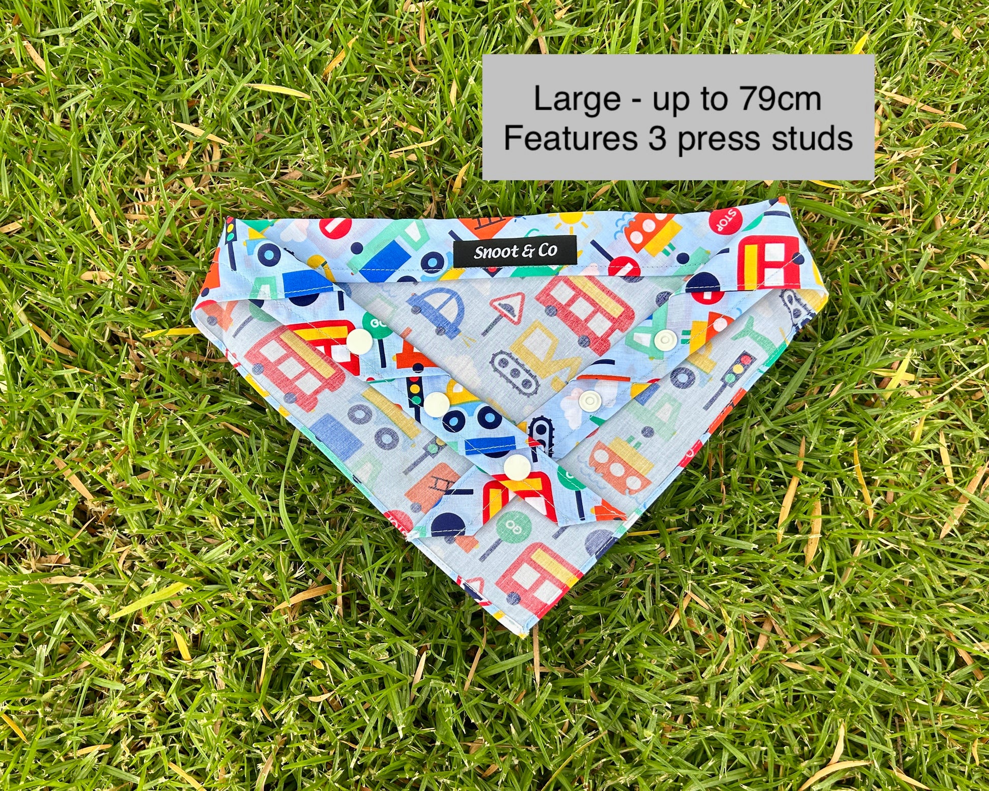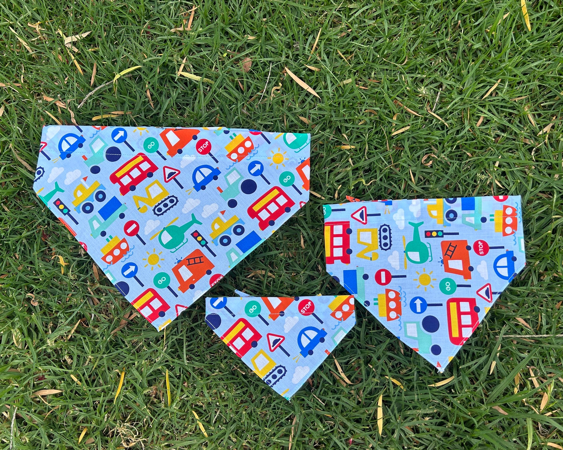 Get your pup ready to hit the road with our Traffic Print Dog Bandana! Featuring a fun and vibrant design of cars, trucks, and traffic signs, this bandana adds a playful and dynamic touch to your dog’s look. Designed with both a snap closure and tie option, it ensures a secure, adjustable fit for dogs of all sizes. Perfect for daily walks, car rides, or adding some excitement to your dog’s wardrobe, this bandana is the ideal accessory for adventure-loving pups!